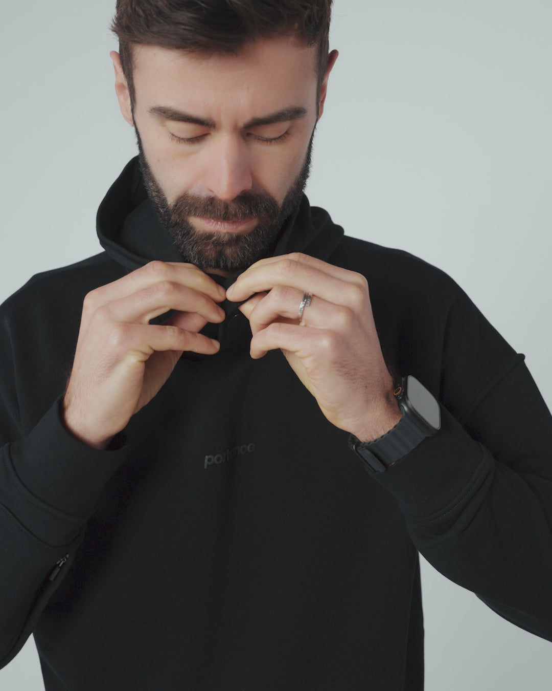Smarter Hoodie im modernen Drop-Shouder Fit. Vereint Komfort, funktionales Design und innovative Technologien. Die Handfertigung in unserer Partner-Textilmanufaktur in Polen aus hochwertiger GOTS Baumwolle sorgt für Premium Qualität.